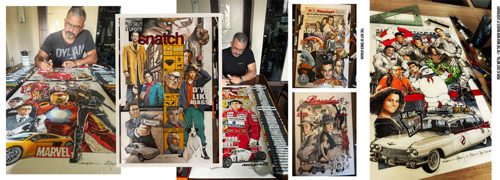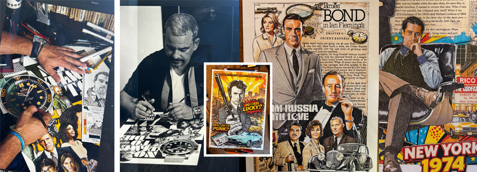 contemporary pop art framework. He combines a cinematic